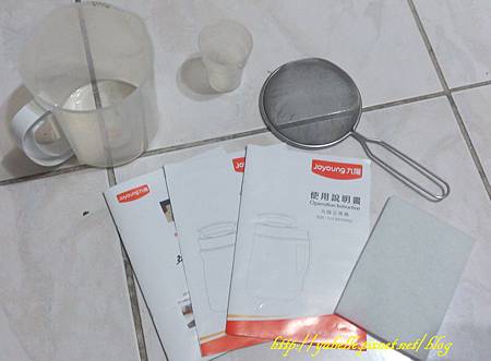 隨機附送(由左到右 由上到下) 過濾杯(用來裝過濾後的豆漿 不過我主要拿它來放研磨機) 小量杯(用來量豆子) 過濾網(過濾豆渣 網子蠻細緻的)
