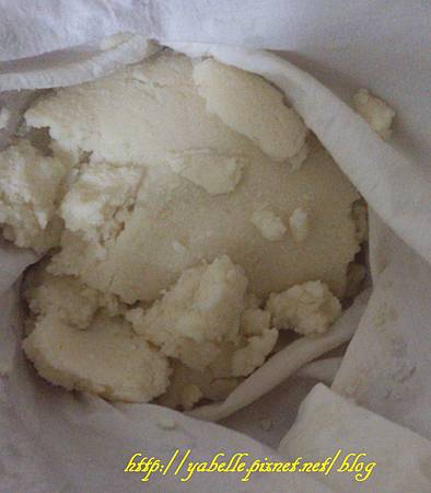 過濾後的豆渣 我會再把它放入豆漿濾布中 還可以再擠出很多豆漿出來 可不要浪費了