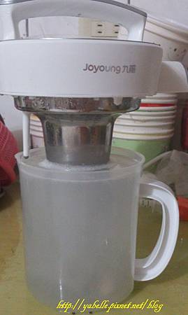 把完成的豆漿放入事先放糖的水壺中
