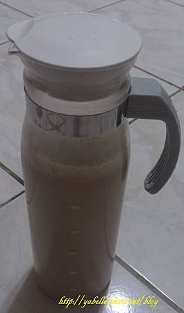 核桃腰果豆漿的顏色跟一般豆漿的純白色不一樣 他有點像奶茶的顏色 但是比較淡