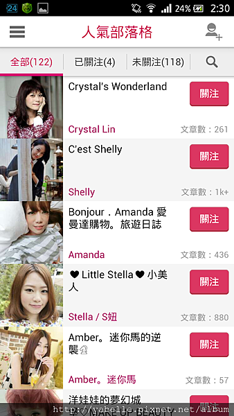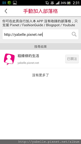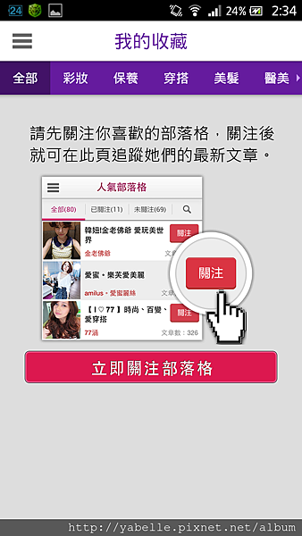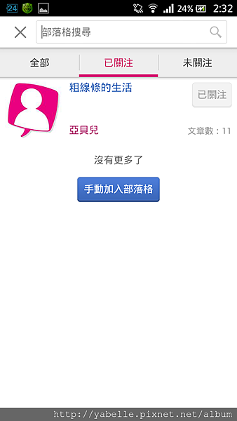 關注完成後 在前一個頁面中的已關注選項 就可以看到關注的部落客
