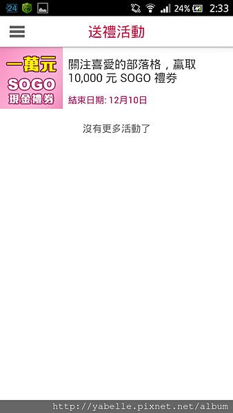 現在是關注三個喜愛的部落格 就可以抽10000元的Sogo禮卷