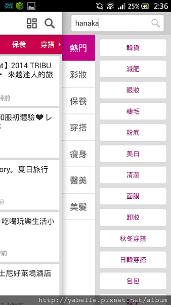 輸入你想看的任何文章關鍵字 像蕥蓓兒想找的是Hanaka 花戀肌的相關文章