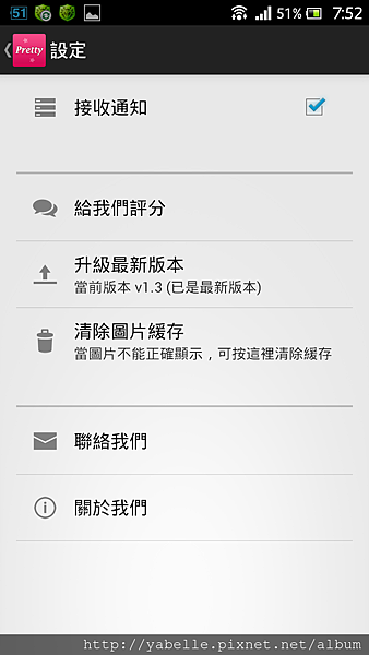 可以選擇要不要接受通知 或是查看版本及聯絡客服