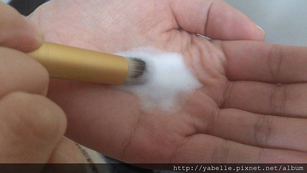 先在手掌利用洗面乳起泡 或是用刷刷沾取泡沫型的洗面乳